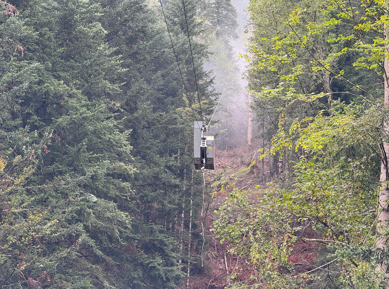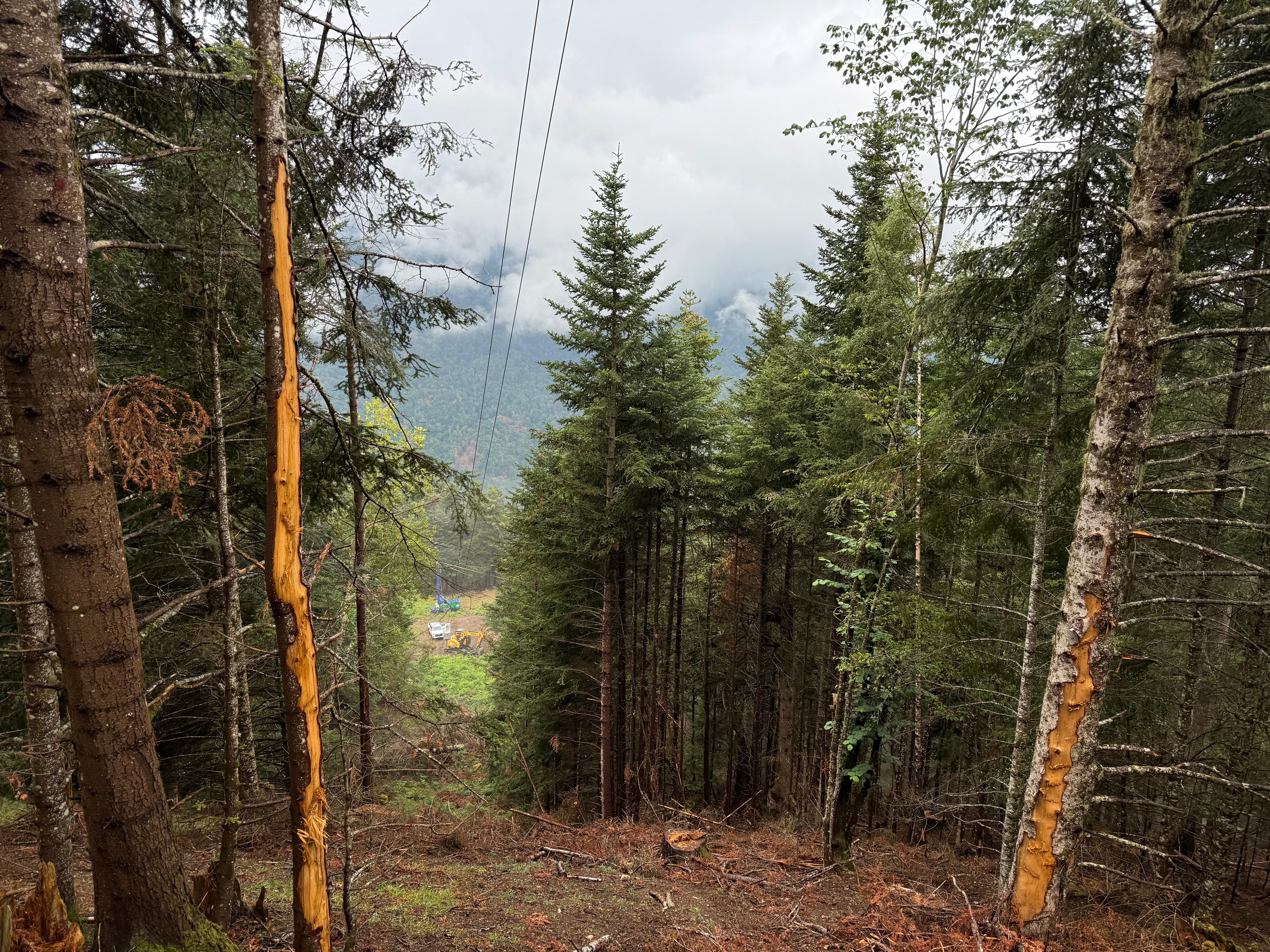 Figura nº3: Imagen donde se aprecia la implementación del cable aéreo en una zona con elevada pendiente en  la Vall d’Aran. Año: 2025. Autor: REMP).