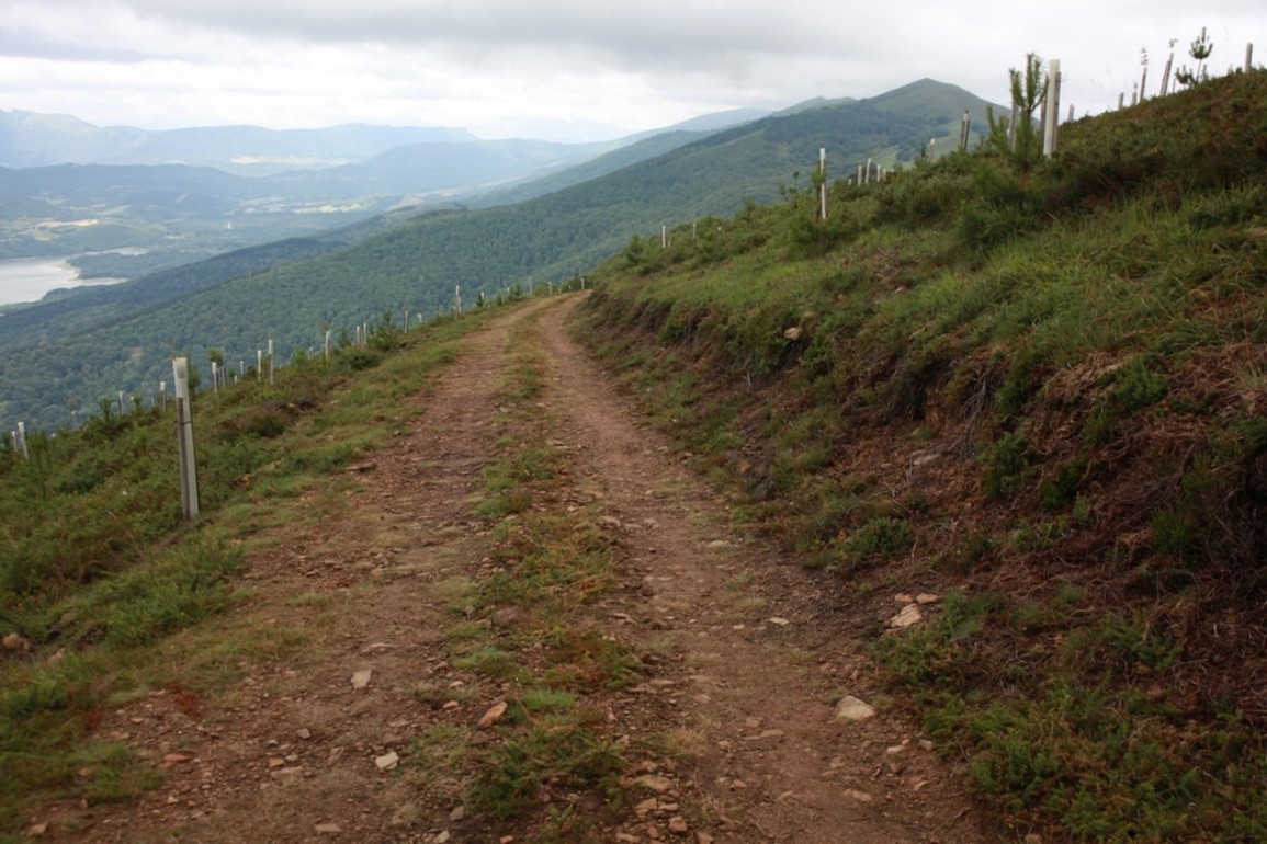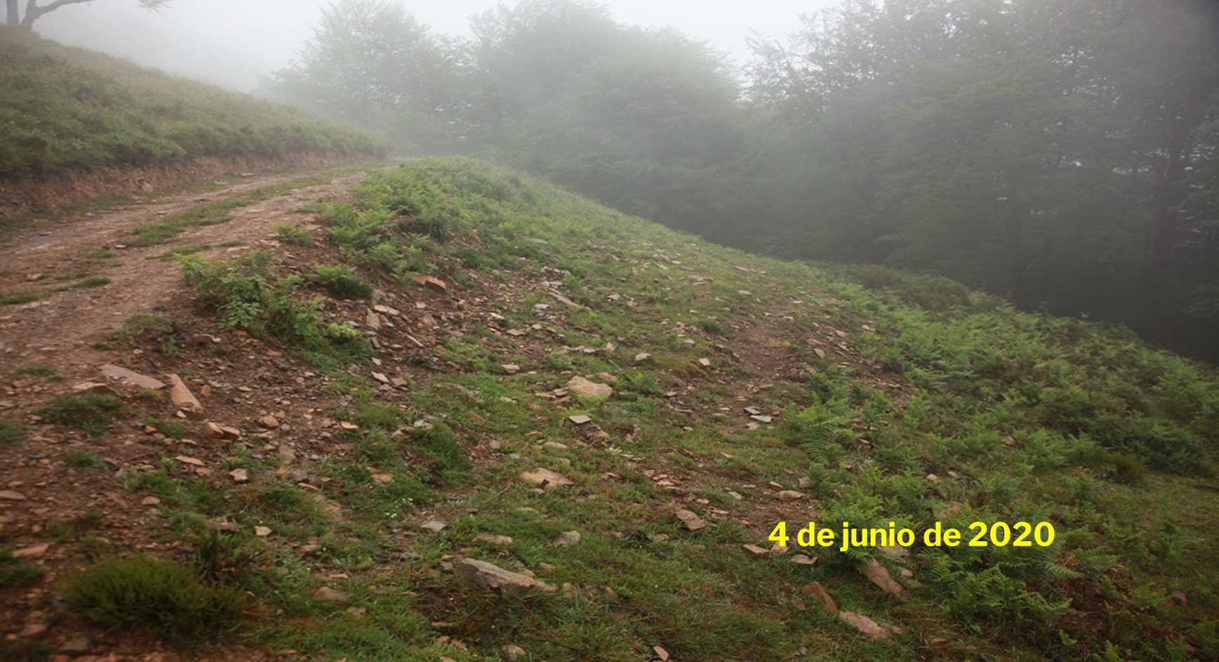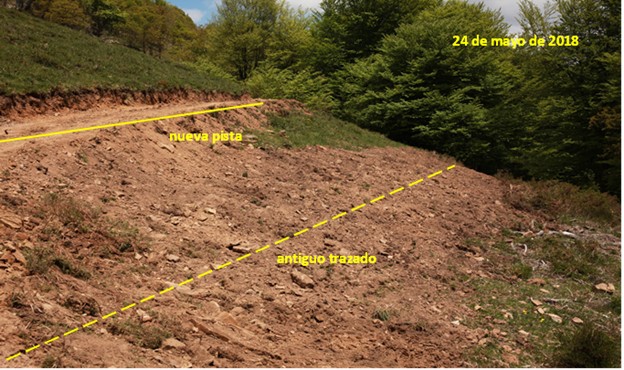 Ejemplo de pista en la que se han perfilado recientemente tanto el desmonte como el terraplén, lo que facilitará los desbroces futuros. Ribota, Burgos. |