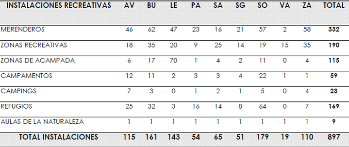 Gran importancia del uso social y recreativo (25% de las áreas recreativas de CyL). Hay 7 camping concesionados dentro de Montes de Utilidad Pública (MUP).importante inversión anual para mantener las instalaciones para uso y disfrute de ciudadano.