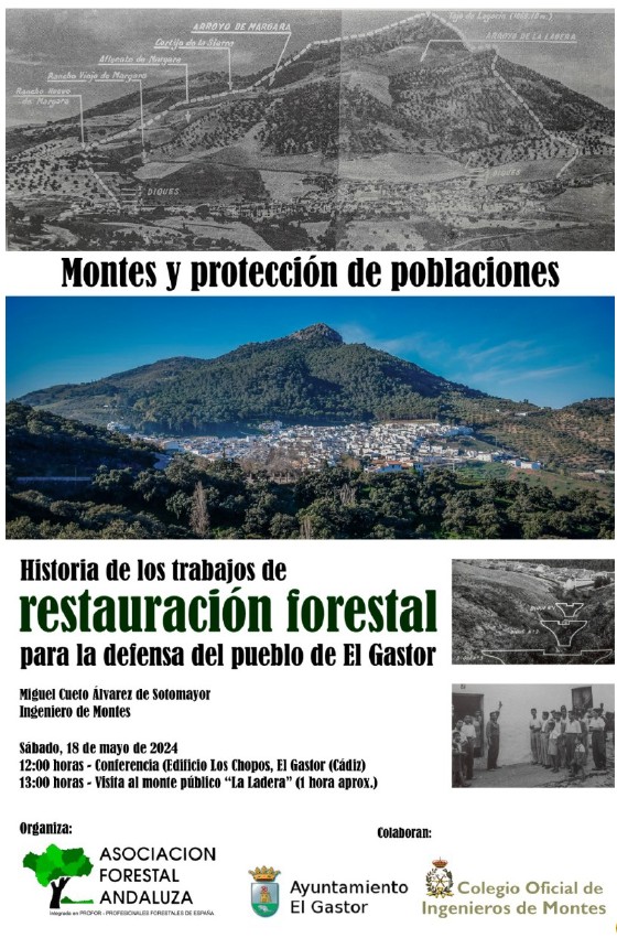 Debido a los acontecimientos catastróficos ocurridos durante el pasado siglo, en mayo de 2024 se desarrolló en el pueblo de El Gastor, en la serranía de Cádiz, una jornada divulgativa sobre “Montes y Protección de Poblaciones”.