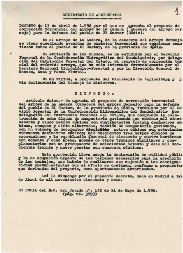 En 2024 estaba próximo a cumplirse los 70 años desde que se acometieran los trabajos de corrección hidrológica y Restauración forestal de las laderas que ahora protegen el pueblo de El Gastor (Cádiz) de las inundaciones y avenidas que sufrió en el pasado siglo XX y se consideró oportuno realizar un repaso de la historia de los trabajos y su situación actual, para darlo a conocer al publico general y ponerlo en valor.