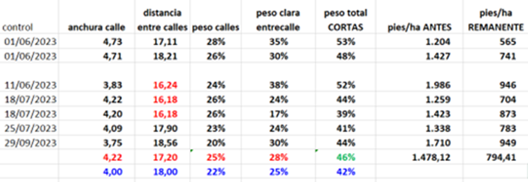 Con ello se verifica tanto la geometría del aprovechamiento como la intensidad selvícola de la intervención.