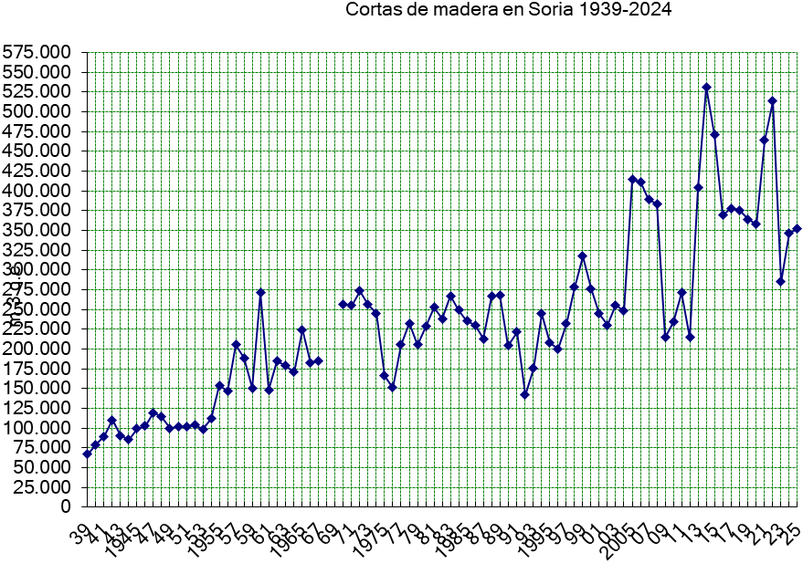 Evolución de los aprovechamientos madereros en Soria 1939-2025.