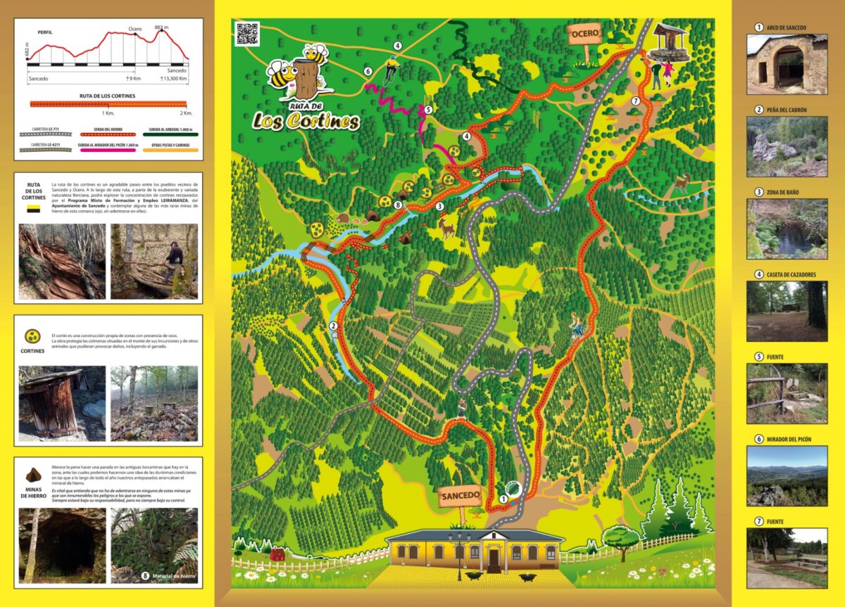 El Trail Center LA COLMENA se justifica y motiva por la necesidad de generar grandes transformaciones en el medio rural y construir un legado que contrarreste la pérdida poblacional, buscando devolver la vida social al pueblo. Concebido como un Parque de naturaleza temático dedicado a las abejas y la apicultura, su objetivo principal es que las personas conecten con el pasado mientras disfrutan de actividades al aire libre. La singularidad de LA COLMENA reside en su infraestructura de más de 50 km de senderos diseñada por trailbuilders experimentados, con el propósito fundamental de ser una red INCLUSIVA, lo que la ha convertido en pionera en Europa al aplicar los estándares de ciclismo adaptado (aMTB). El proyecto pone en valor un conjunto arqueológico y etnográfico notable a través de sus rutas temáticas: • Ruta de los Cortines: Este recorrido circular de 13 km une Sancedo y Ocero y se centra en la recuperación de 14 cortines. Los cortines son construcciones circulares de piedra empleadas tradicionalmente para proteger las colmenas frente al oso. Este conjunto es una muestra magnífica del patrimonio etnográfico, y se ha instado su declaración como Bien de Interés Cultural (BIC). • Senda del Hierro: Un itinerario de 6 km llenos de flow que deleita a ciclistas y senderistas. Su valor reside en que permite visitar un complejo minero con seis minas de hierro y oro excavadas en la roca y esparcidas por la zona, explotadas desde la antigüedad. El terreno es ideal para la aventura, ofreciendo subidas suaves y fluidas, zonas rocosas y senderos con flow. Las sendas transcurren a través de parajes dignos de un cuento de hadas, en un hábitat caracterizado por bosques de roble, castaño y pinar, siguiendo el curso del arroyo del Rigo. Gracias al microclima de la comarca y los diferentes rangos de altitud, el disfrute de la senda es posible todo el año.