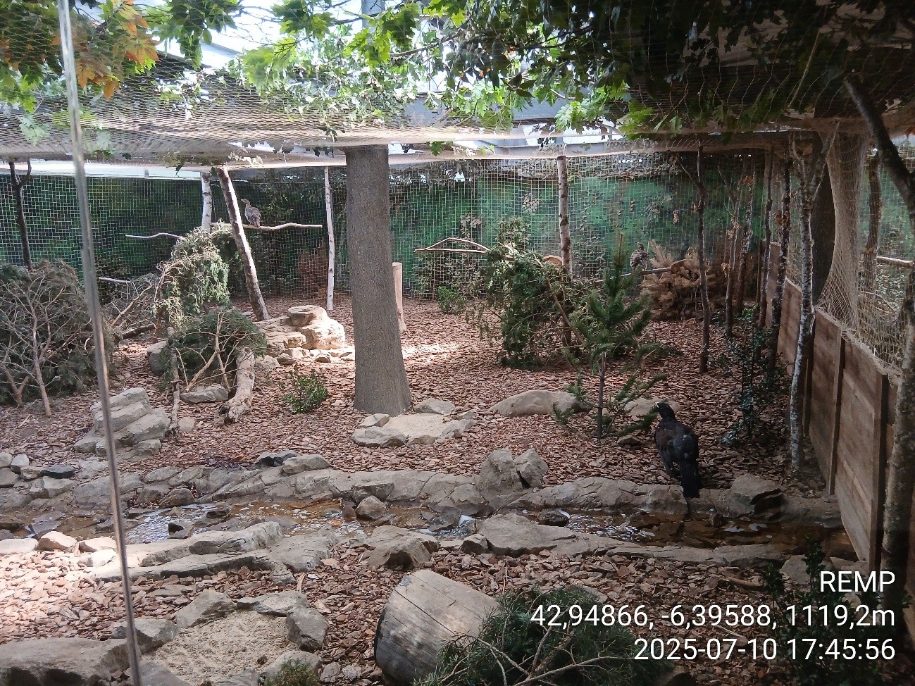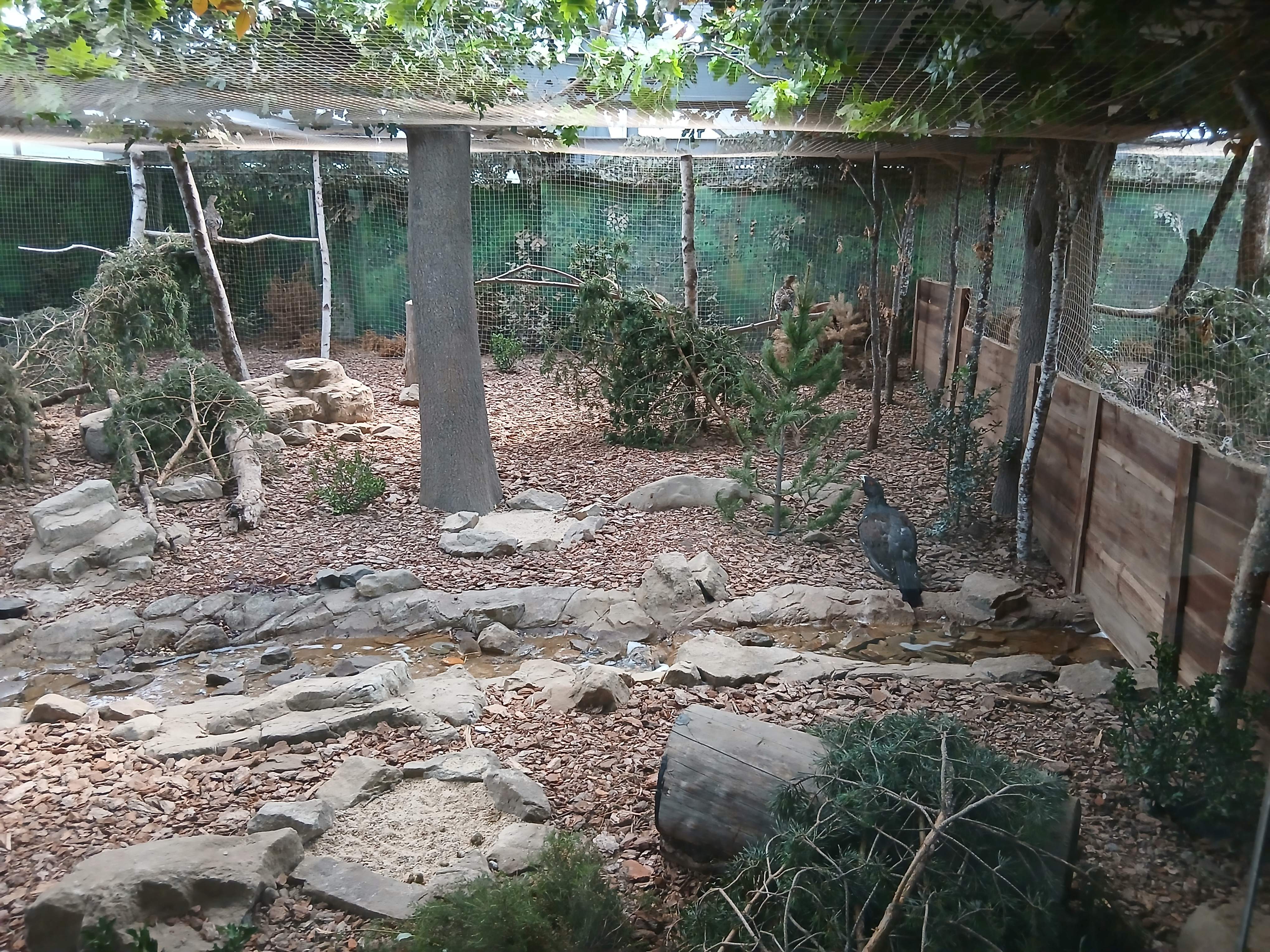 El voladero alberga ocho ejemplares de urogallo centroeuropeo “Tetrao urogallus”, organizados en dos unidades familiares compuestas por un macho y tres hembras cada una. Cada grupo dispone de un recinto seminatural de 135 metros cuadrados, diseñado para replicar las condiciones de su hábitat natural, favoreciendo su bienestar y comportamiento natural.