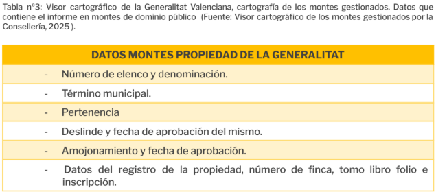 • Se debe tener activada la cartografía de montes gestionados por la Conselleria de la Generalitat Valenciana.