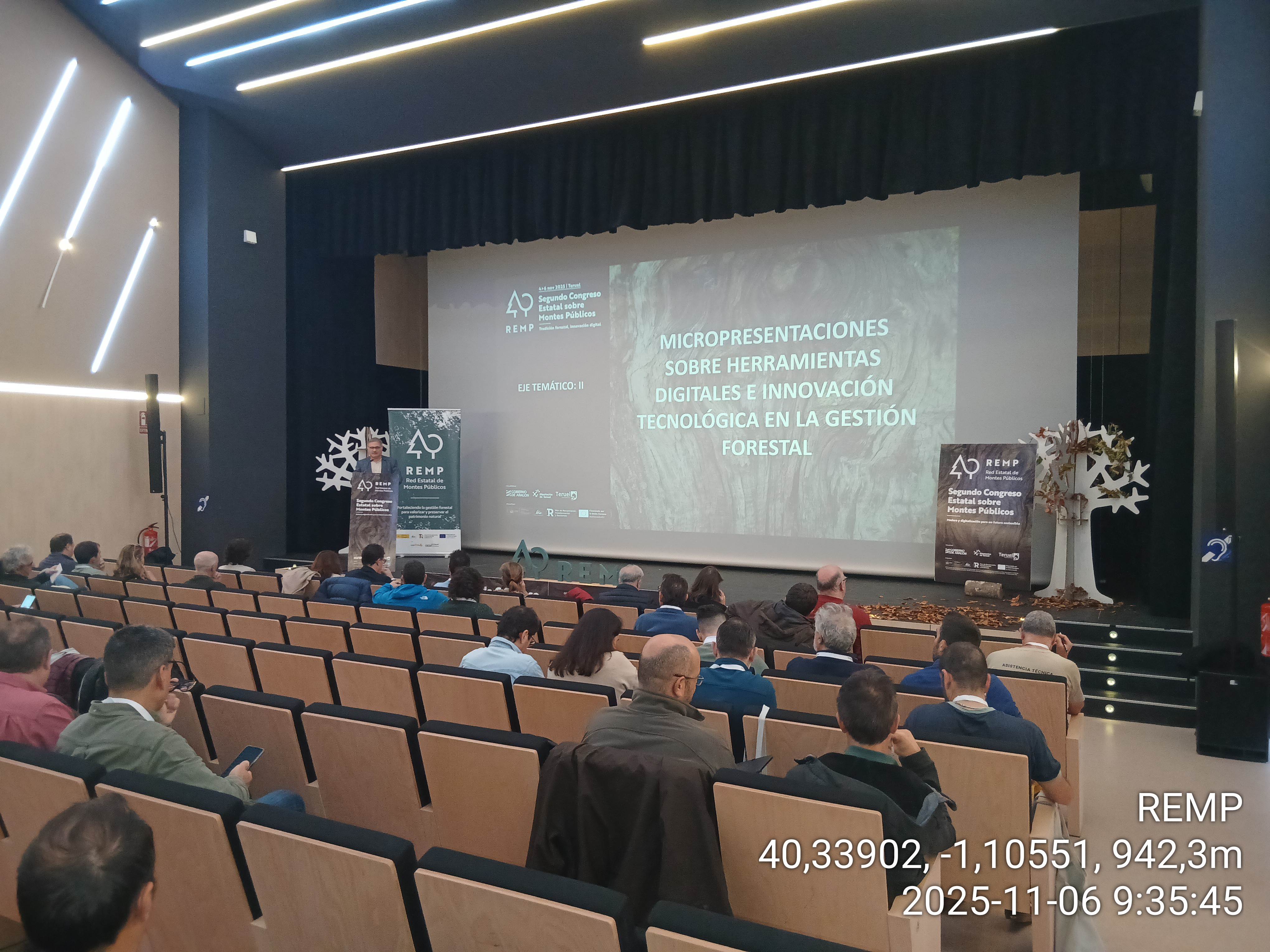 Pusimos el broche final al II Congreso Estatal sobre Montes Públicos con una jornada dedicada a la innovación tecnológica en la gestión forestal, con un formato muy dinámico: micropresentaciones de tres minutos donde las personas inscritas compartieron sus buenas prácticas en digitalización del trabajo forestal.